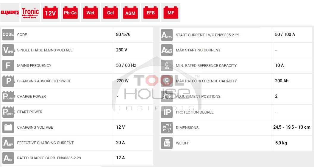 (TRONIC),για τη φόρτιση μπαταριών μολύβδου-οξέος με τάση 12 / 24V μοτοσυκλετών, οχημάτων, φορτηγών και ελαφρών