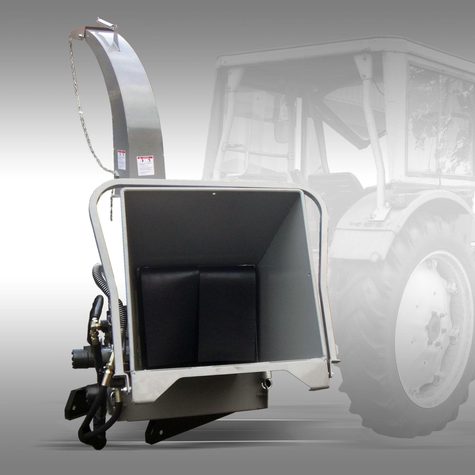 - περιστρεφόμενη κατά 360° χοάνη ύψους 220 cm που διευκολύνει την απόθεση του θρυμματισμένου υλικού σε ρυμουλκούμενο τρακτέρ ή απευθείας σε μεγάλες σακούλες